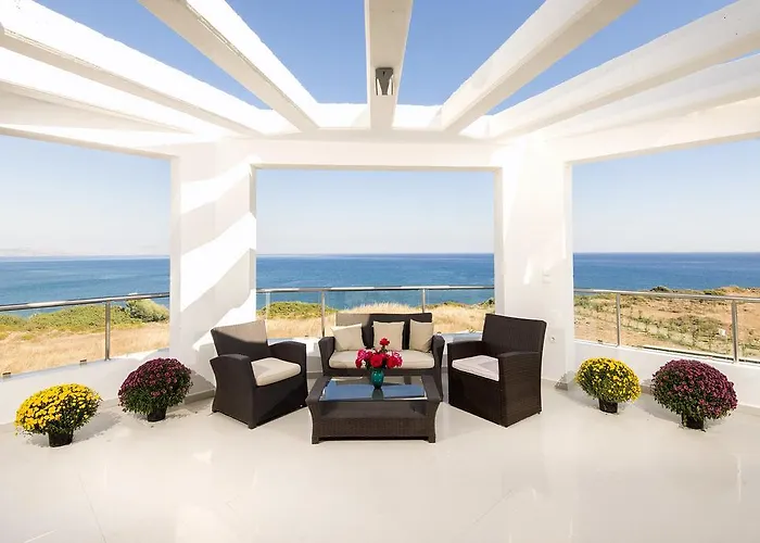 La villa Olga Luxury Beach Front Villas se trouve à moins de 75 km de l'aéroport de Rhodes. La propriété a une piscine extérieure sur son balcon.